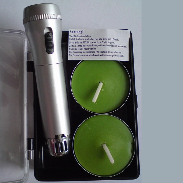 Das Notlicht ist die perfekte Hilfe bei Kurzschluss oder Stromausfall für zu Hause oder unterwegs, beim Camping oder Trecking. Ein Feuerzeug mit LED Taschenlampe und zwei Teelichtern in einer stabilen Etui-Verpackung. Eine Ausführung mit Anti-Mücken-Kerzen ist ebenfalls erhältlich.