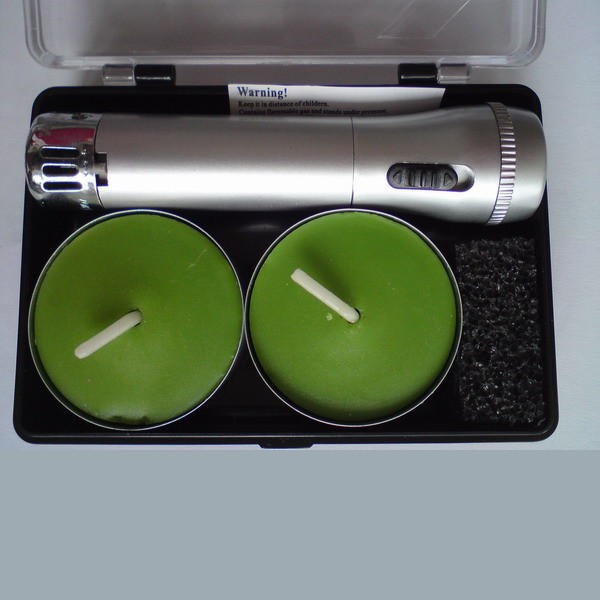 The Emergency lighting kit comprises an LED flash-light, a lighter and two tea light candles.