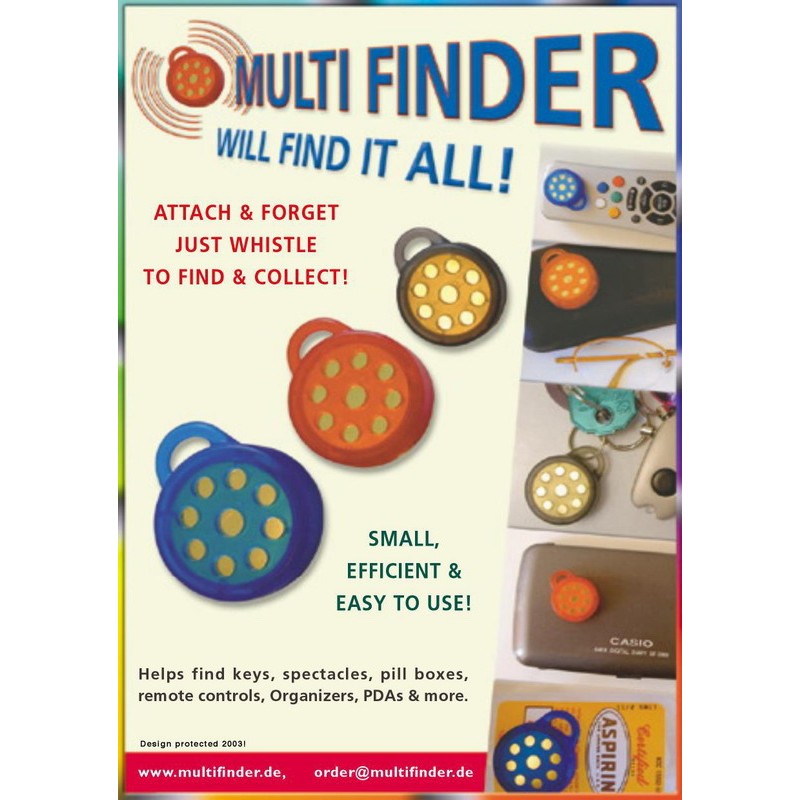 Der MULTIFINDER ist selbstklebend und lässt sich auf nahezu jeder Fläche anbringen. Er hilft bei der Suche nach Schlüssel, Brillenetui, Organizer, Fernbedienung usw. Besonders praktisch ist auch das Anbringen am Reisekoffer. Jeder MULTIFINDER kommt mit einer Batterie… , Klebestreifen sowie eine Kinderwarnung. Zum Starten des MULTIFINDERS wird der Streifen an der Batterie herausgezogen. Falls der MF nach etwa 10 Sek. noch nicht aktiviert ist, klopfen Sie ihn vorsichtig, wobei die Lautsprecherlöcher nach oben zeigen sollten.